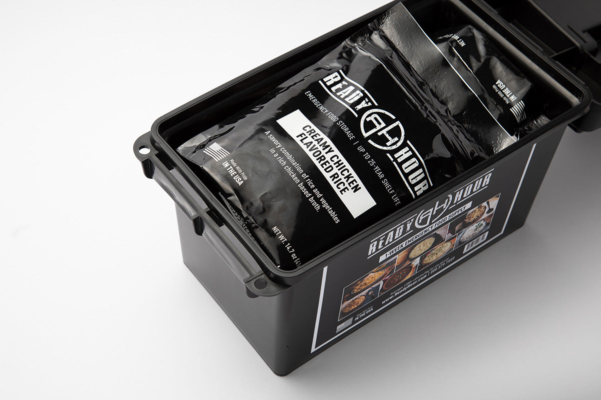 Building a food supply for your home, cabin, shelter, or bunker is a journey. Little by little, your stockpile will grow to meet your preparedness goals. Our 1-Week Food Supply Ammo Can will help you get there!