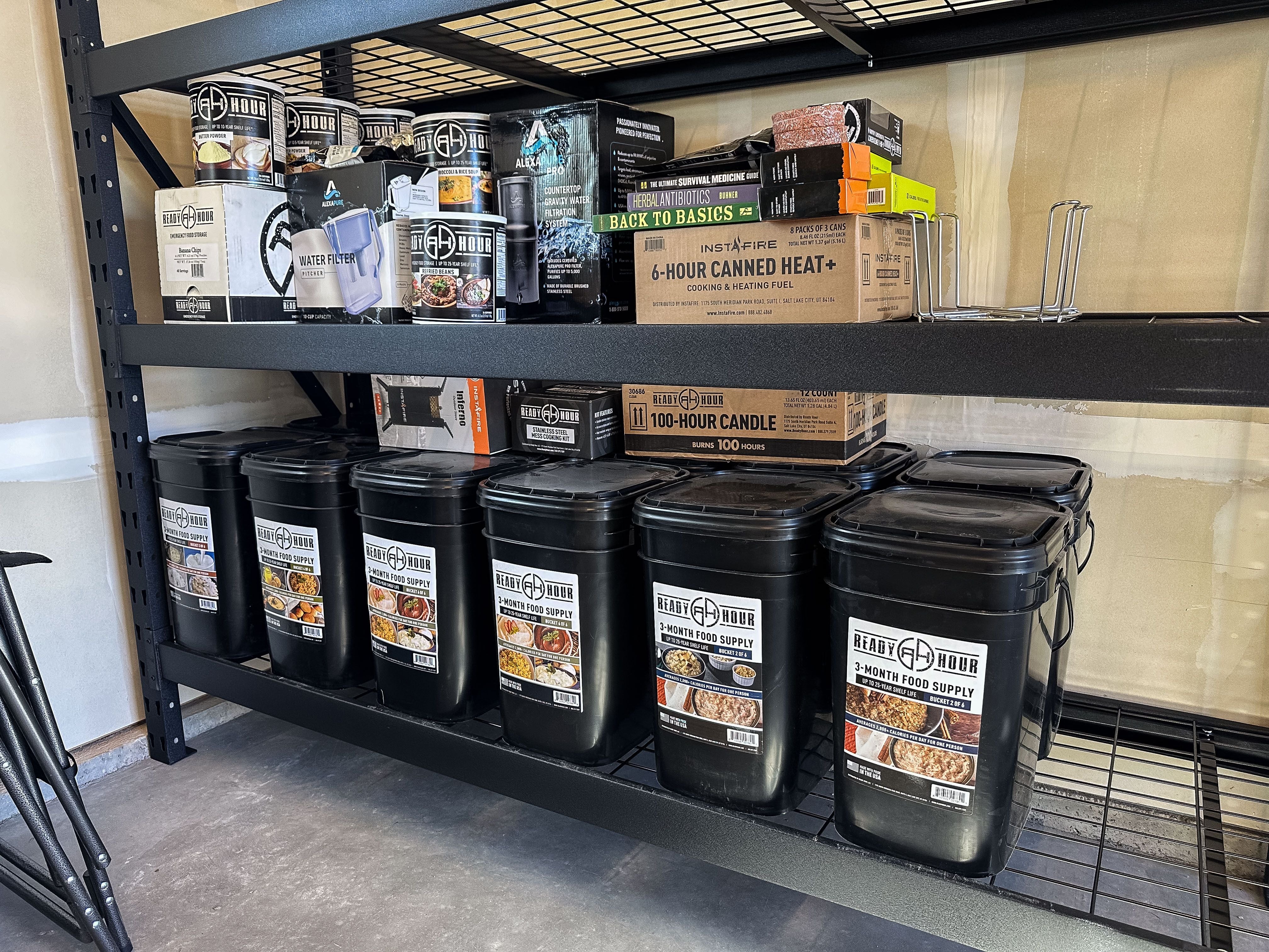 Meals are sealed in heavy-duty, 4-layer pouches and stored in weather-resistant, stackable buckets built for emergencies.